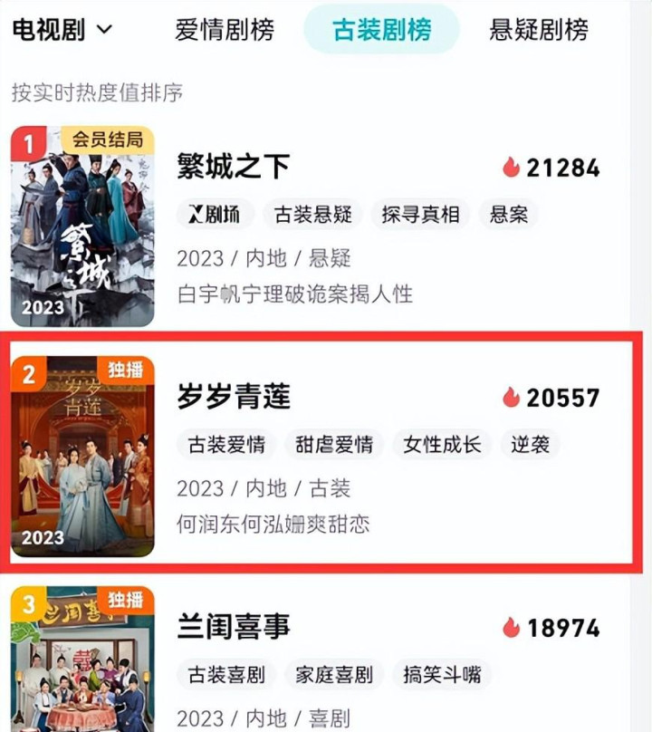 《繁城之下》的成功在于其稳健的叙事节奏和悬疑氛围,这些都是悬疑剧吸引观众的重要因素。年轻演员的出色表现也为剧集增色不少,显示出他们在古装剧中的潜力。而《岁岁青莲》则因为剧情的草率处理和制作问题,未能延续好口碑。古装剧市场依然火热,但观众的要求也在不断提高,制作方需要在题材和制作上不断创新,以满足观众的期待。只有在剧情、演员和制作上都做到精益求精,才能在激烈的市场竞争中脱颖而出。